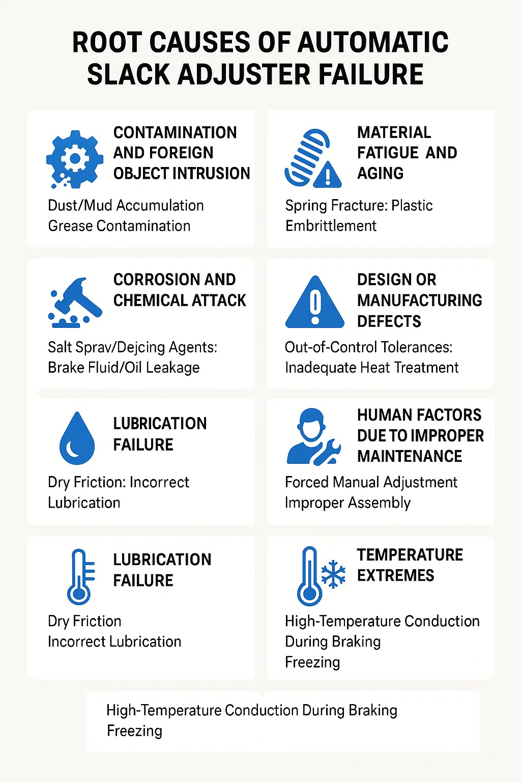 Vysokoteplotné vedenie počas brzdenia: Počas dlhých zjazdoviek v horských oblastiach sa teplo z brzdového bubna prenáša do nastavovača, čo spôsobuje karbonizáciu mastnoty alebo tvrdenia tesnení.