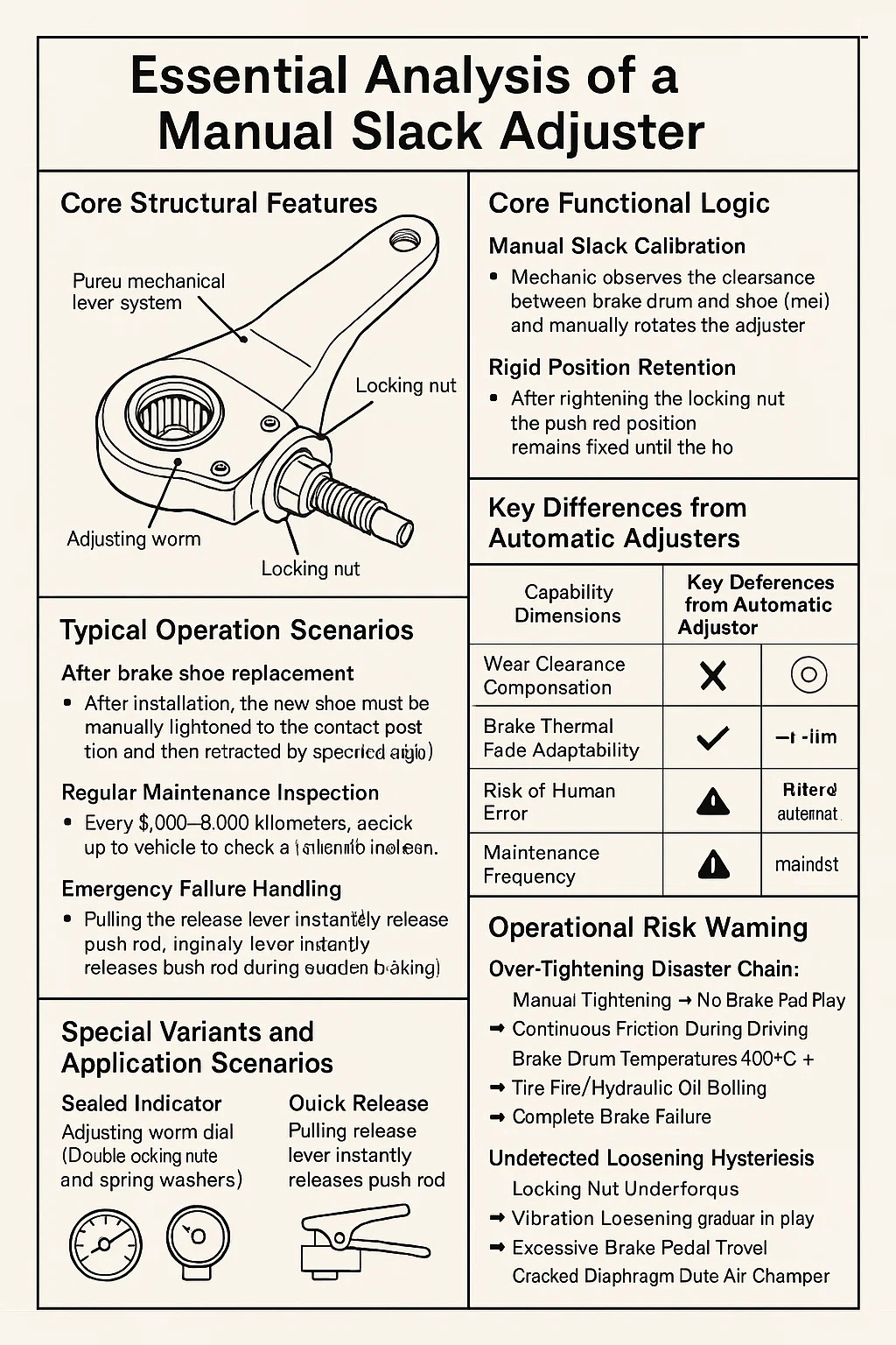 Pravidelná kontrola údržby: Každých 5 000-8 000 kilometrov musí byť vozidlo zdvihnuté, aby sa skontrolovalo odbavenie a upravilo sa, ak nie je tolerancia. Manipulácia s núdzovým zlyhaním: V prípade automatického zlyhania nastavovača dočasne manuálne upravte vôľu, aby sa udržal pohyb vozidla do opravného bodu.