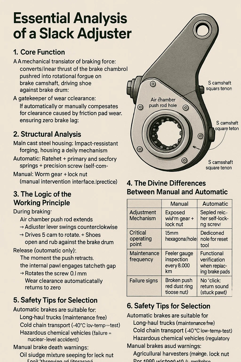 Mechanický prekladateľ brzdnej sily: prevádza lineárny ťah brzdovej komory do rotačného krútiaceho momentu na brzdovom vačkovom hriadeli a riadi topánku proti brzdovému bubnovi.